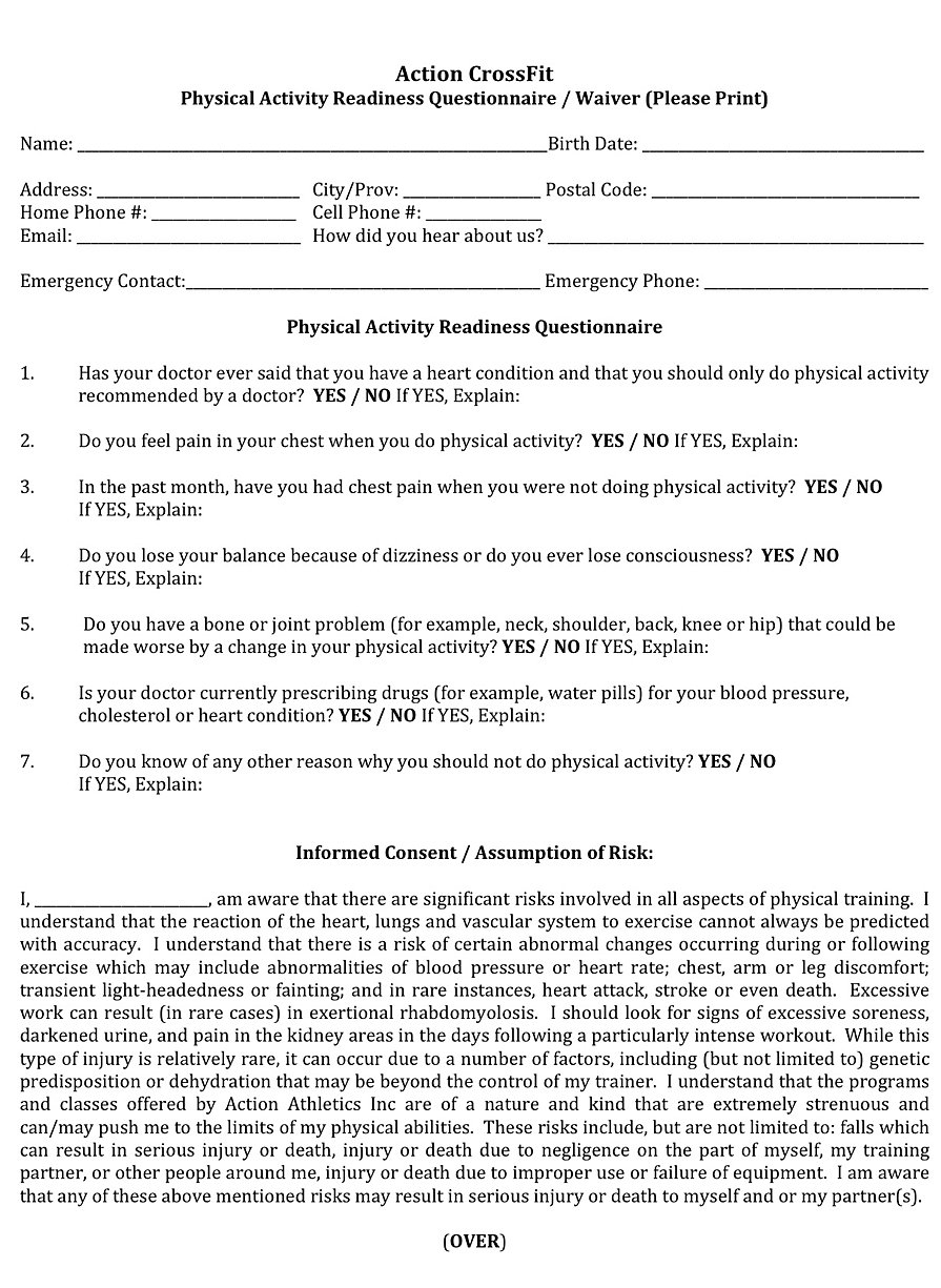 PARQ Physical Activity Readiness Questionnaire